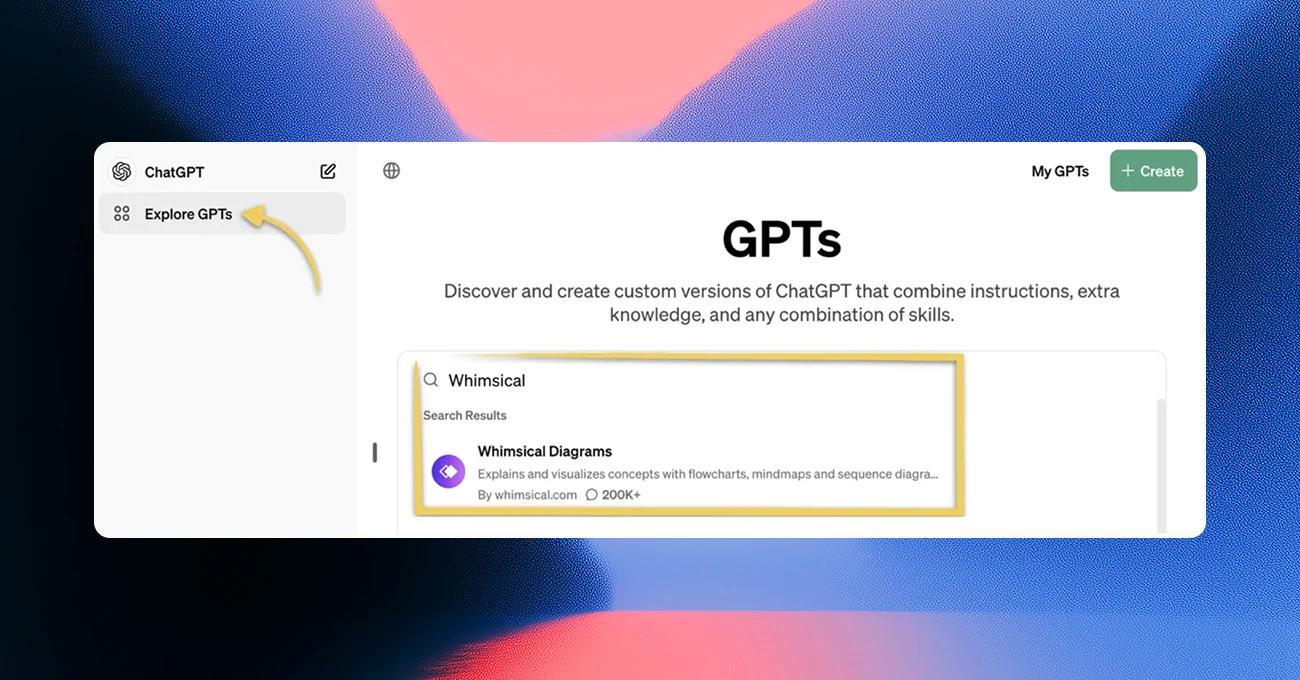 Click here to open Whimsical Diagrams GPT in your ChatGPT account. Or follow these instructions to get started: