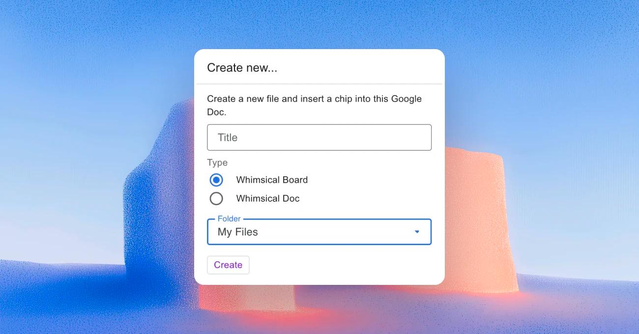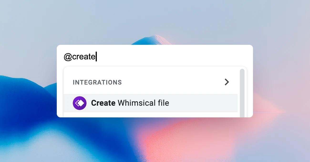 Create Whimsical files and embed live boards in your Google Docs. Use the @ command to spin up a new Whimsical board in any doc, or paste a Whimsical link to convert it into a smart chip with a hover preview. Great for design docs, specs, and wireframes.