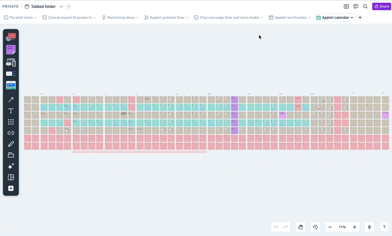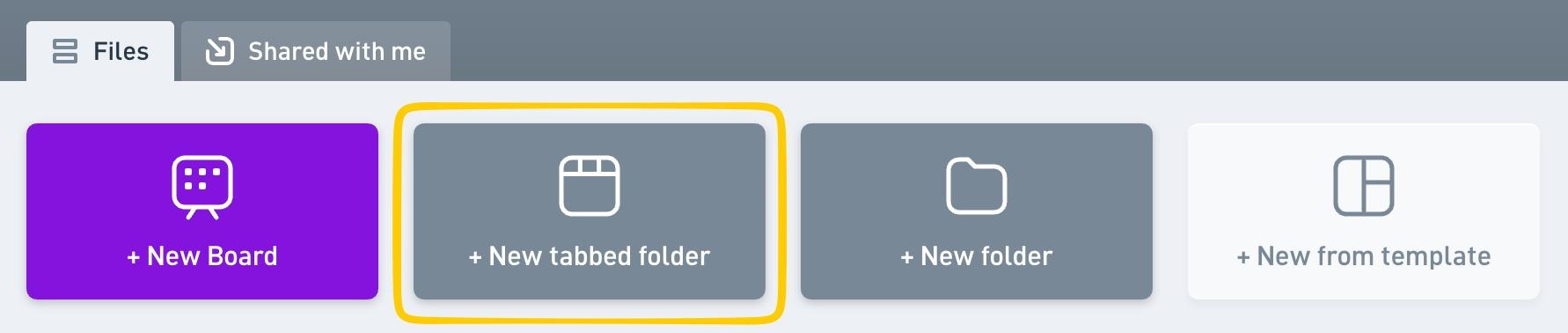 A tabbed folder is a convenient way of viewing and organizing your files and folders in Whimsical. Instead of a simple list or grid, tabbed folders let you arrange your content in the header, so you can switch between files and folders like this: