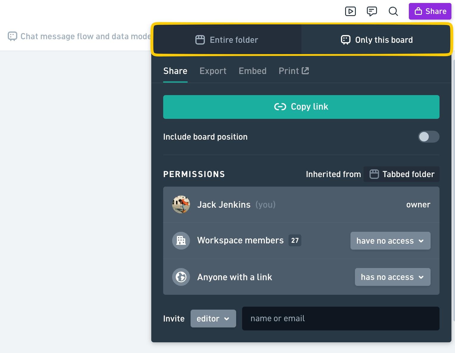 When sharing from a tabbed folder, you have the option to share the specific file you’re viewing, or the entire folder: