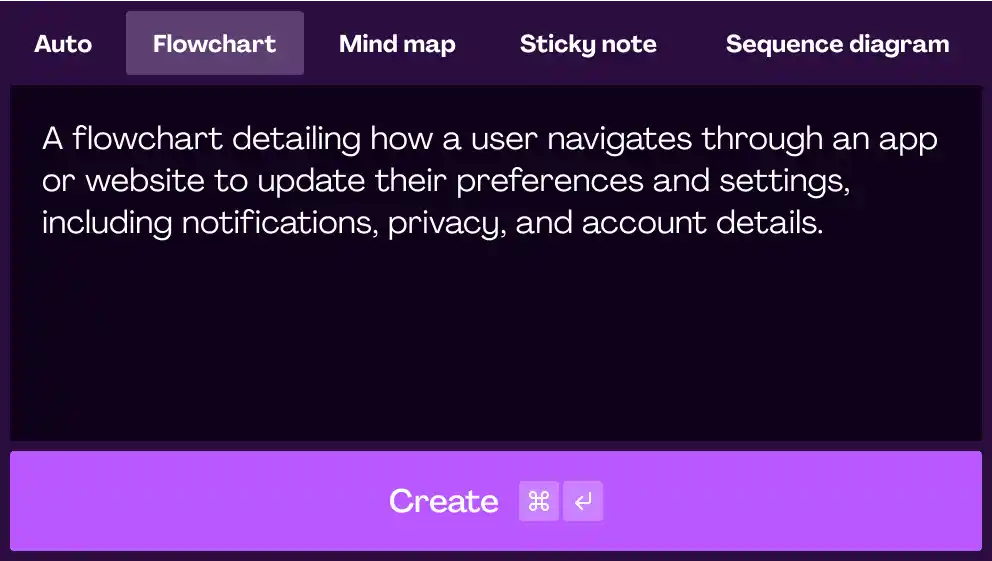Create a flowchartTurn text directly into flowcharts, user flows, sequence diagrams, and more with Whimsical AI. Plus, you can edit or improve the diagram just like any other flowchart.