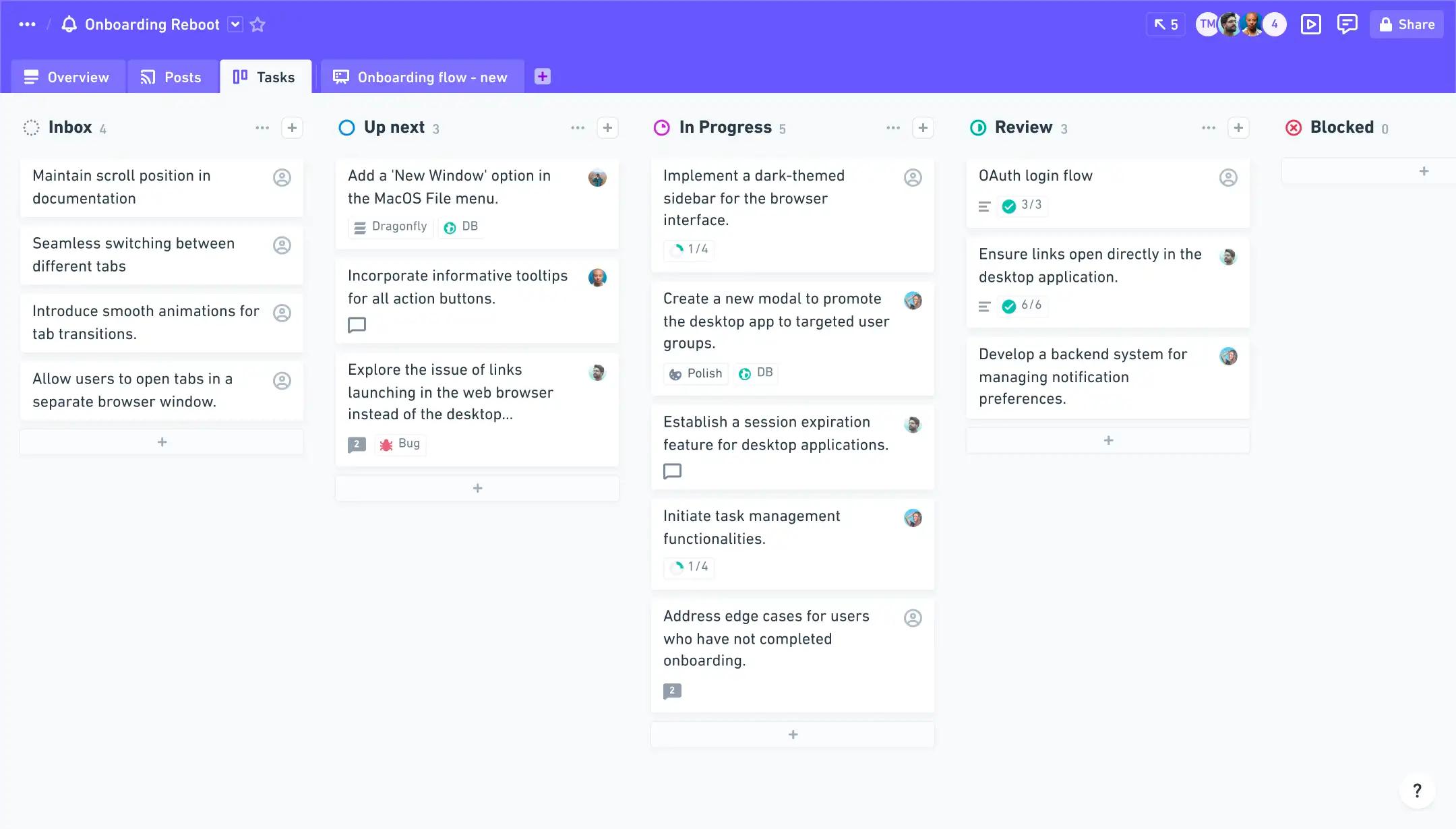Stay on top of what’s in progress, what’s at risk, and what’s done so you can spot blockers early and keep things moving.
