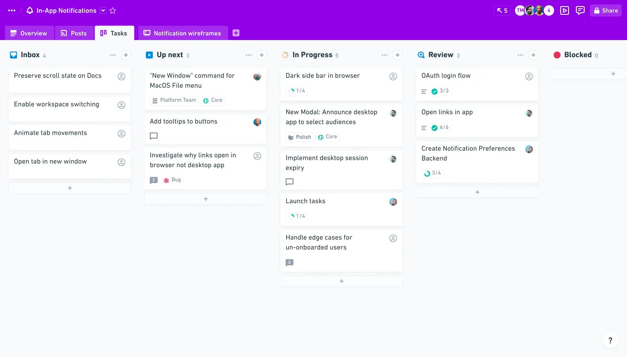Use Docs to write specs and briefs, Boards to visually explore and align, Projects to assign work and track progress, and Posts to share updates and document decisions. Everything is linkable, commentable, and always in context—so teammates can contribute when it works for them.